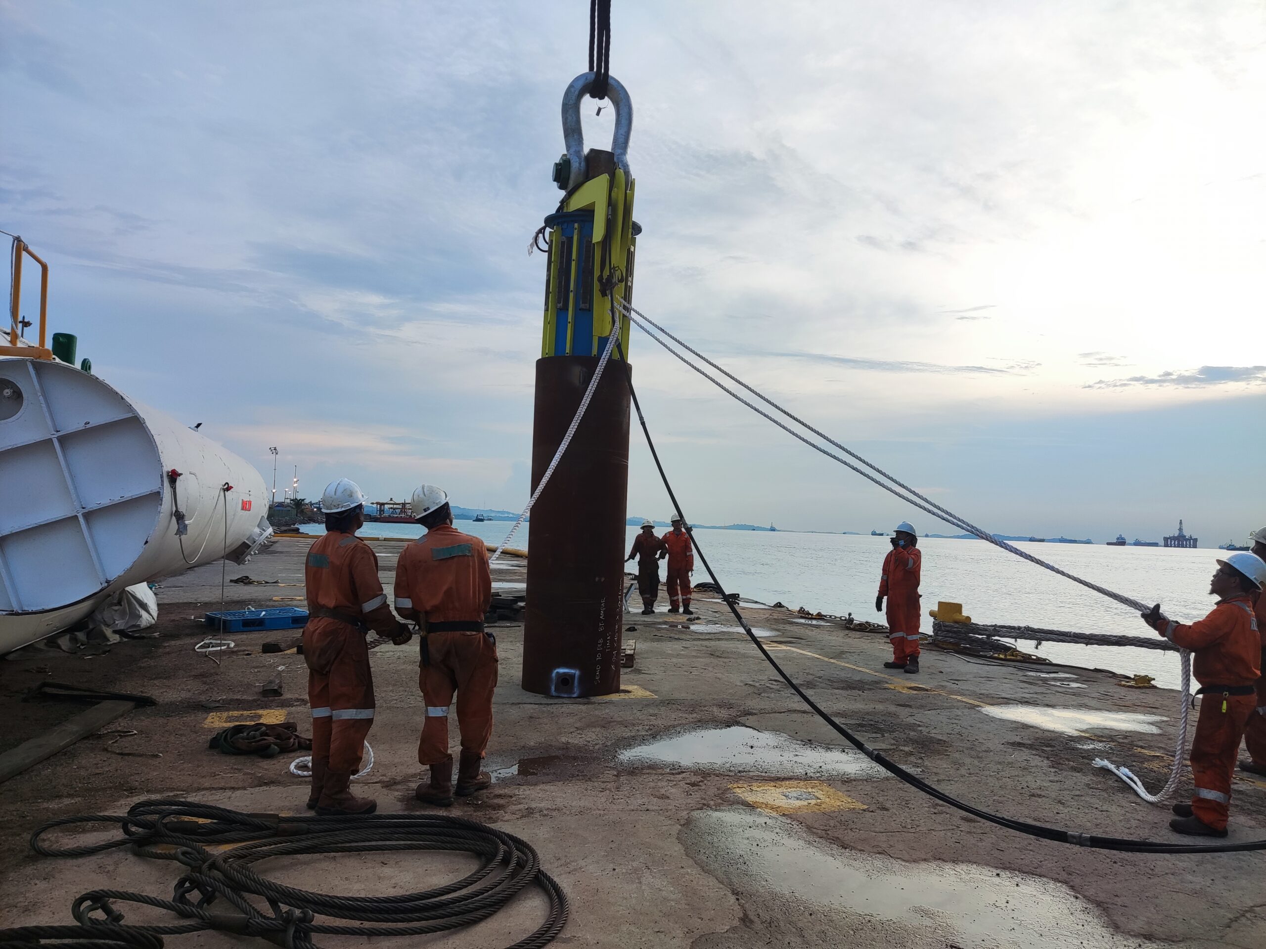 Depend on each pile characteristic and available barge/vessel and as well crane hook capacity, OCS will offer the best design, fabrication and installation method to suit the project and lowering offshore time as possible. While OCS has been dealing a lot with multiple pile handling projects using other pile handling equipment, OCS itself offers reliable In-House Pile handling system.