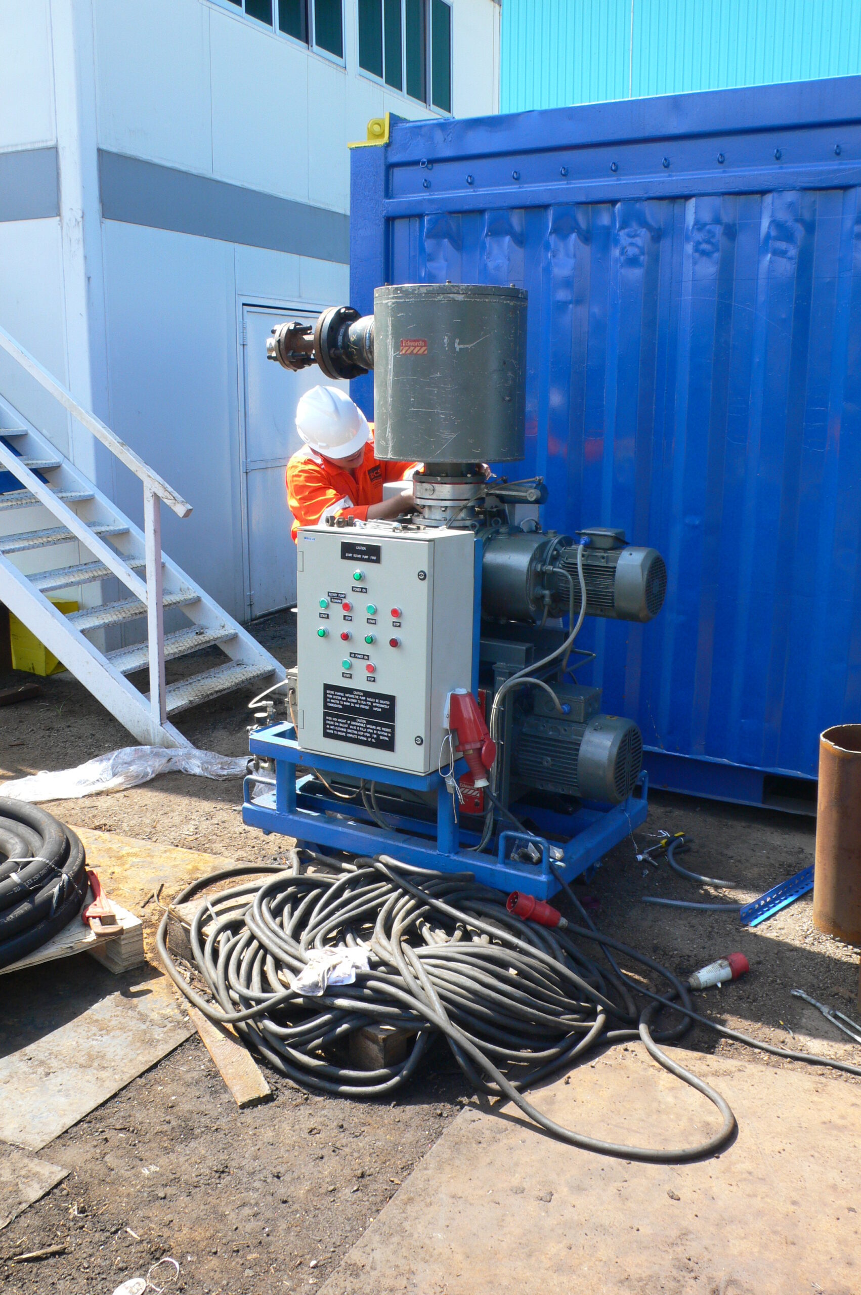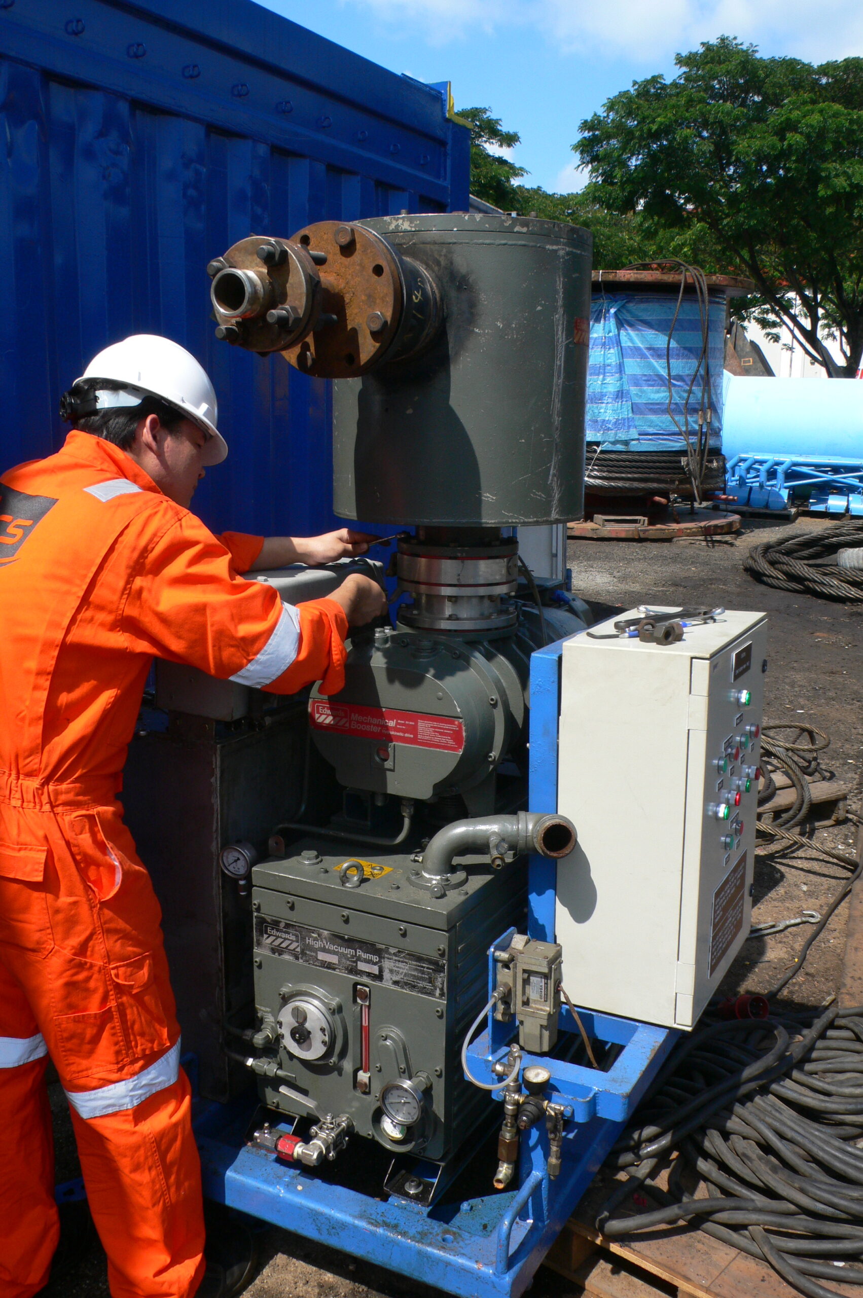 The Edwards vacuum pump employed in the OCS’s pipeline pre commissioning operation spread is Edwards model E1M 275 vacuum Pump with Edwards EH1200 series mechanical booster pump.