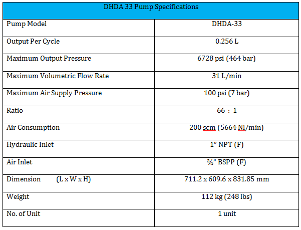 HYDRATON DOUBLE ACTING AIR DRIVEN HIGH PRESSURE PUMP Data Sheet Download