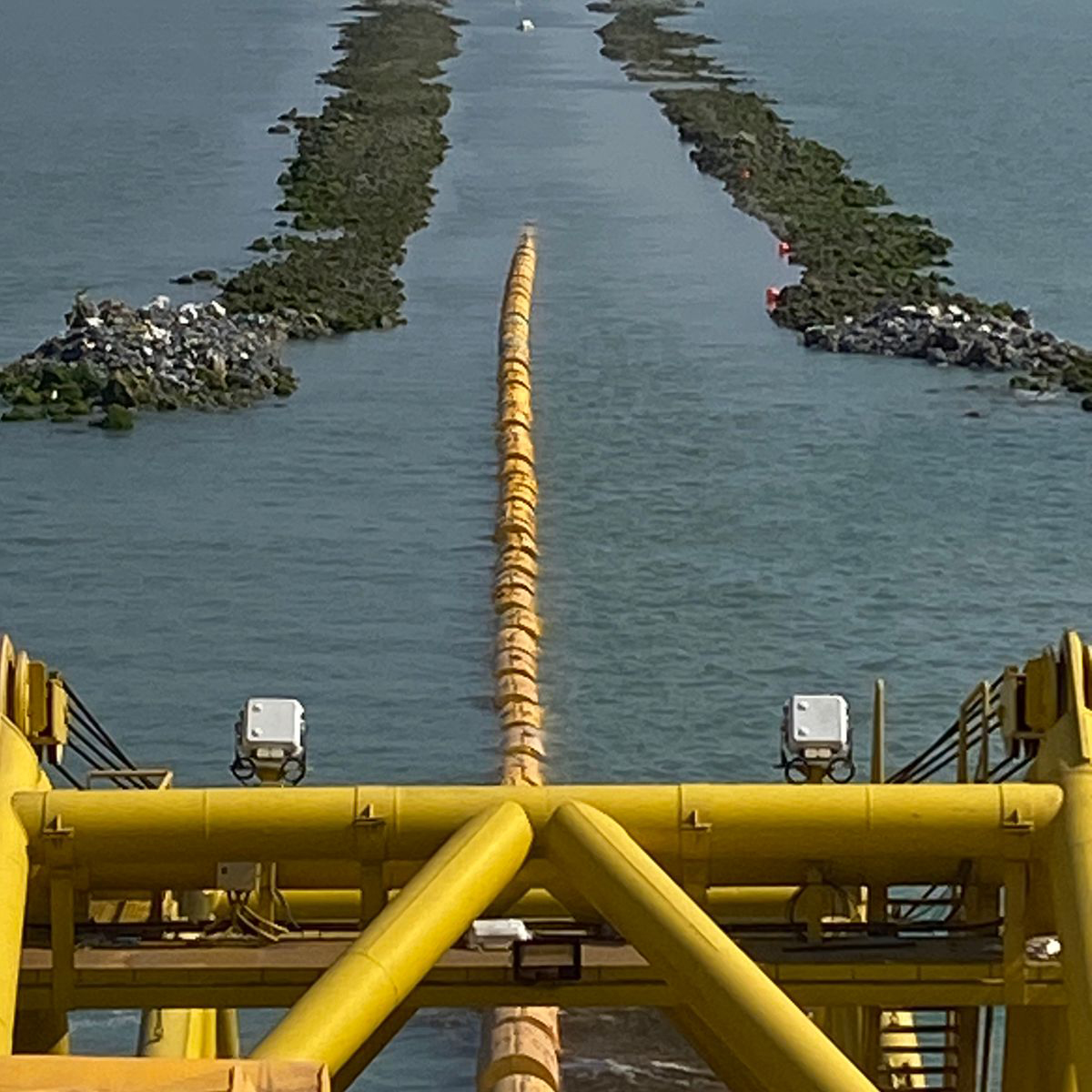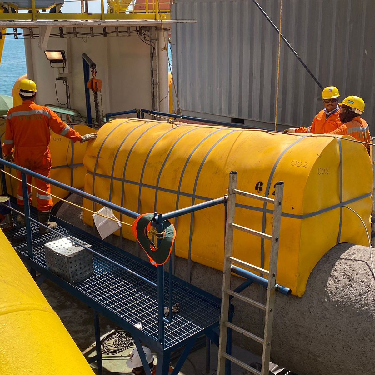 The high tidal variation (>5m) and also the small trench made the beach pull very challenging with very unique problems which need unique solution. The beach pull was completed to client’s satisfaction.