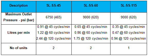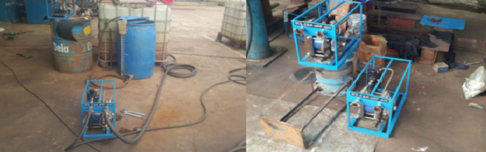 OCS owned PH pumps are skid mounted Air driven high pressure pumping unit, which is used for hydro static testing of pipelines. This pump is a normally used for hydrostatic testing of pipelines with high pressure requirements. OCS’s owns 5 no’s of PH pumps. Out of five of this PH pumps, two pumps are of 5L-SS-45 series and two pumps are of 5L-SS-60 series and one pump is of 5L-SS-115 series.