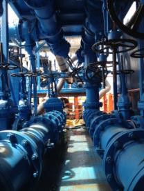 A dedicated water distribution manifold is provided to direct feed water to the pressure pumps and return pressurised water to the hose spooler / jet sled or trailing arm with an overboarding facility for pump testing. This manifold is configured with all the necessary valves