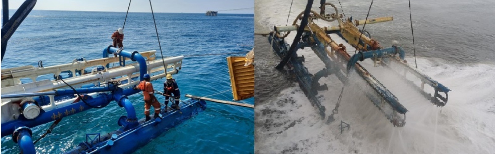 - Jankrik for ENI. Burial of 42 km of 24” / 4” Piggy back to varying TOP from 0.5 metres to 2.0 metres using a pontoon articulated arm jet sled. Work from two moored vessels and DP vessel for two contractors (2016 / 2017).