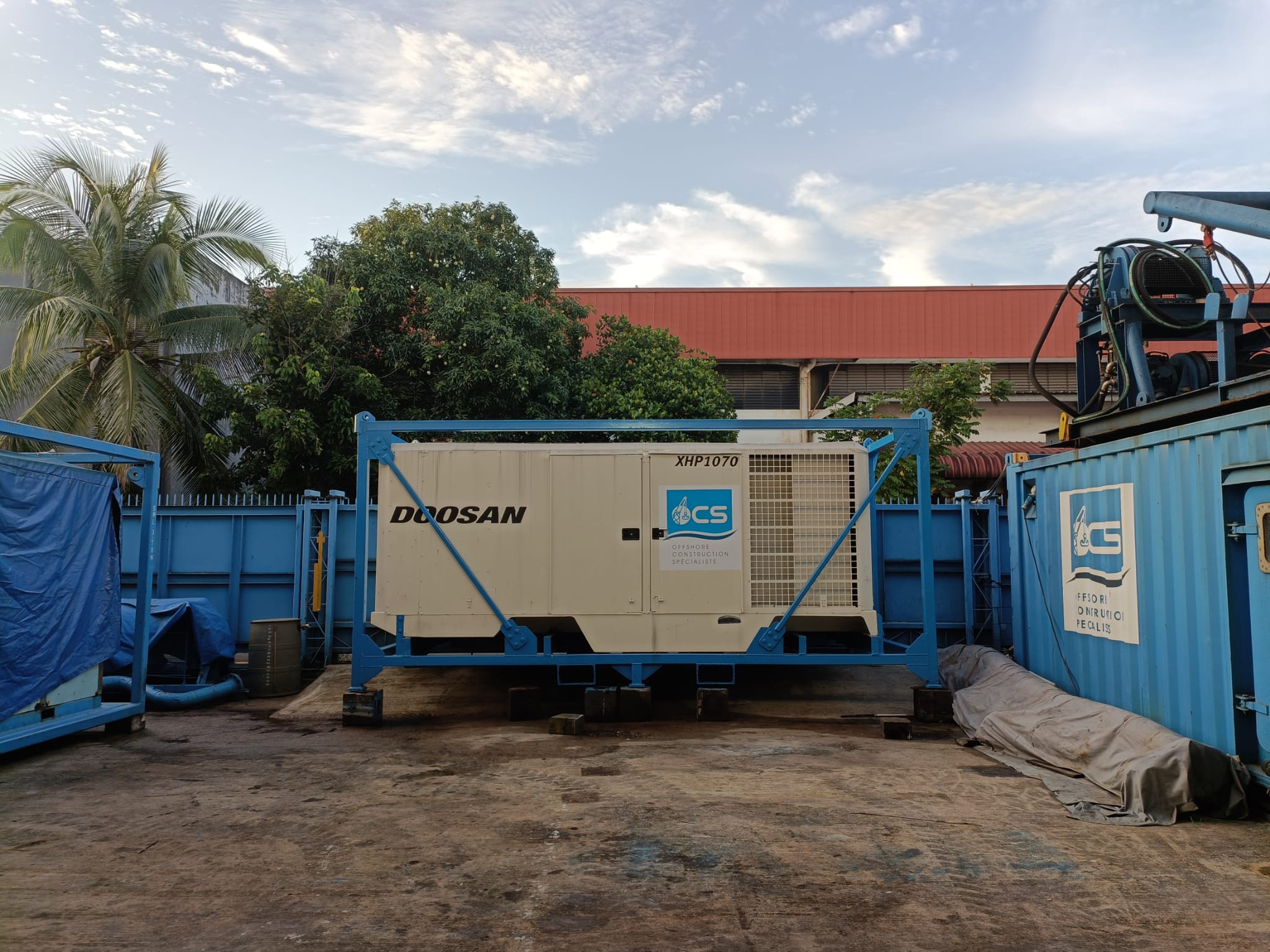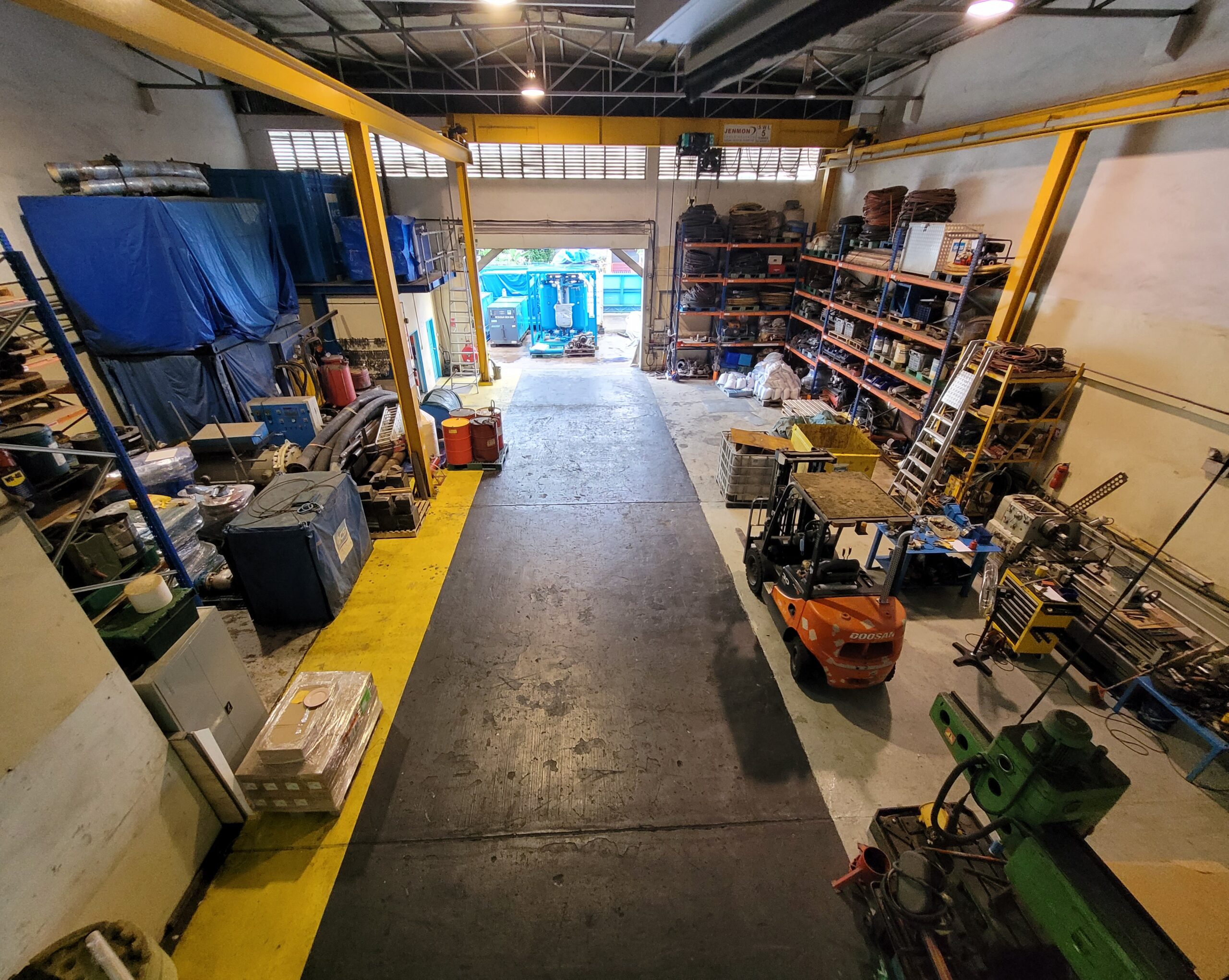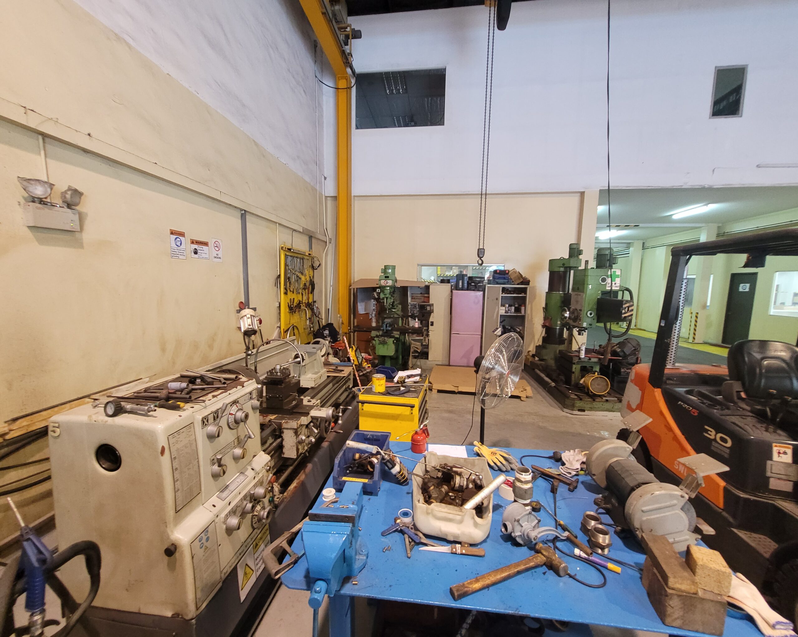 The work shop is equipped with 2 and 5 tonne overhead gantry cranes and a 3 and 15 tonne forklift. The premises provide the space and general servicing facilities for the preparation of all OCS equipment ensuring that equipment is properly prepared for OCS projects. A pump testing facility is included to provide proper flow and pressure testing for OCS pumps. The work shop is also equipped with machining equipment including a large lathe, rotary drill and universal milling machine.