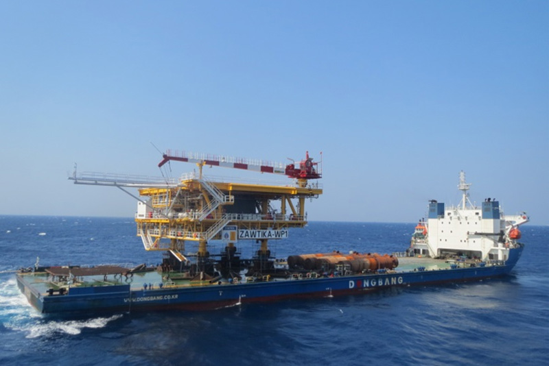 The Zawtika Project is a gas field development project located in the Gulf of Moattama, Myanmar. The development area covers Block M9 and small portion of Block M11, owned by Myanmar Oil & Gas Enterprise (MOGE). The field lies approximately 300 km south of Yangon and 290 km west of Tavoy on the Myanmar coast and the average water depth is approximately 135-160 meters.Zawtika Development Phase-1A consists of ZPQ (Processing platform integrated with Living Quarter module), a bridged-link wellhead platform WP1, two remote wellhead platforms WP2 and WP3, associated intra-field sealines, offshore and onshore gas export to connect to the PTT gas pipeline at Ban-I-Tong, Onshore Operating Center (ZOC), Block Valve #1 and #2 (ZBV1 and ZBV2), and Metering Station (ZMS).PTTEP has awarded the contract for the Zawtika Wellhead Platform 1, 2 and 3 with SealinestoLarsen & Toubrowith the contract amount over USD$ 200 million. Larsen & Toubro has awarded the “Project and Construction Management including Installation Engineering for Offshore Installation” scope of works to OCS:
